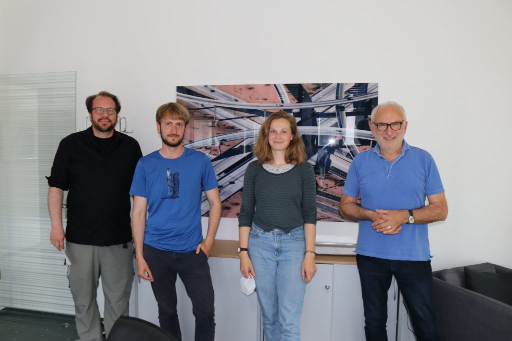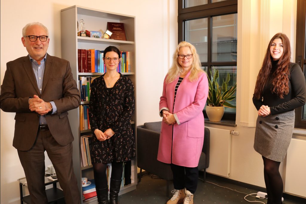Vlnr.: Johannes Bock, wissenschaftlicher Mitarbeiter, Nelson Janßen, Fraktionsvorsitzender der Linken in der Bremischen Bürgerschaft, Lisa Baumann, wissenschaftliche Mitarbeiterin und Prof. Dr. Stefan Görres